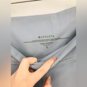 Athleta salutation stash pocket || cinch, coastline blue, woman’s size XL | little faint stain on left side, good condition, not worn out