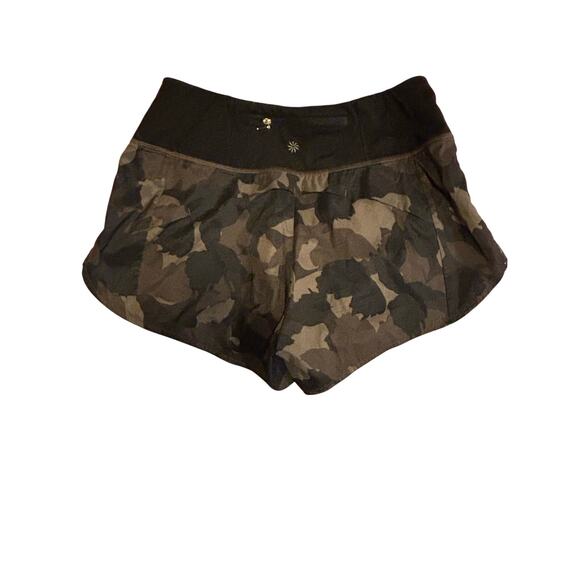 Get ready to conquer your workout in these stylish and functional Athleta camo green shorts!