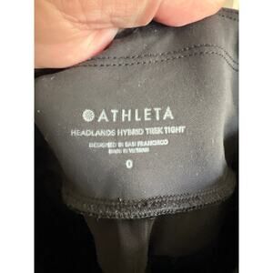 Athleta size 0 black stretch pants in nice condition. Pockets in the front and back. Waist is 11” across when not stretched at all and can stretch to 14”. Inseam is 29” and rise is 10”.