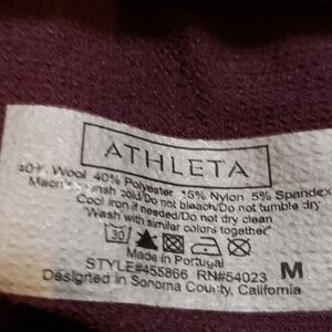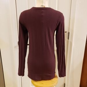 Athleta size Medium eggplant colored has thumb holes All measurements are APPROXIMATE and taken lying flat Pit to pit 11.5" shoulder to hemline 21.75" A15