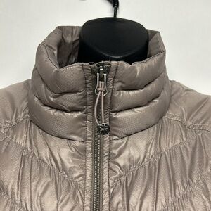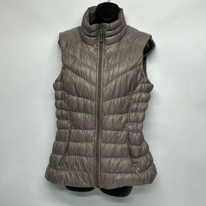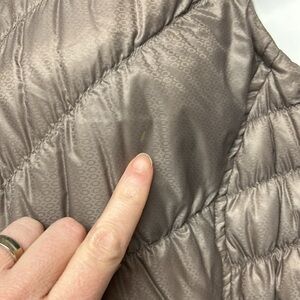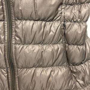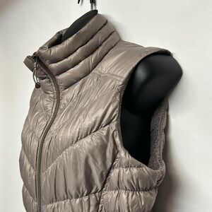 In very good condition, Athleta size medium goose down vest one small spot on the front left could possibly wash out to zipper pockets