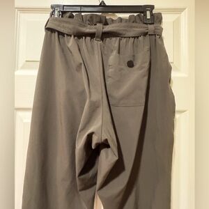 Elevate your style with these chic mid-waisted pants. Featuring a stylish tie-front design, these pants are perfect for any occasion. The elegant black color adds a touch of sophistication to your wardrobe. Athleta Pants Womens 6 Arbor Olive Skyline II Paperbag mid rise Belt.