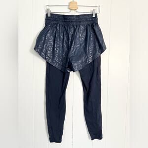 Athleta small Ranier 2 in 1 Tight navy blue shorts leggings