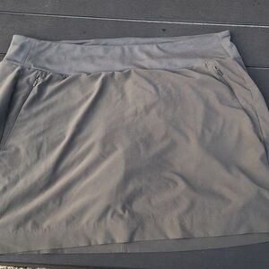 Athleta soho skort two front zipper pockets. Two back flap pockets. The color is kinda greenish olive. First two pictures are off internet that is the right color… my lighting makes them look darker than they are, but the outside pictures are close to color. Good Preowned condition size 16.