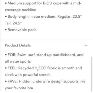 Athleta square neck bra cup tankini