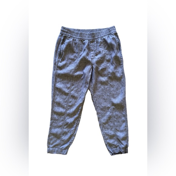 Athleta tall gray pants linen elastic waist and foot 4 pockets tie size L travel , work , college comfy relaxed pants