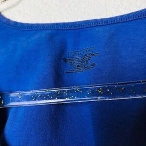 Good pre-owned conditions! From a pet free smoke free home. the picture shows up like a royal blue but its more between a light blue and lilac color. Conservative top to work out comfortly.