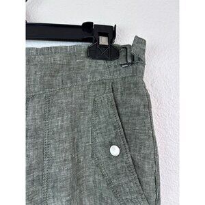 Athleta women's 6 Voyager Linen tapered leg ankle crop pant aspen olive green