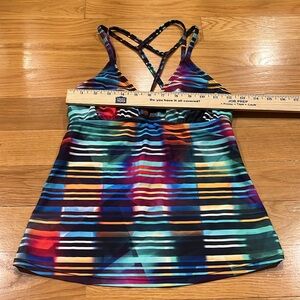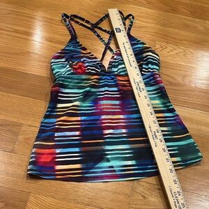 Athleta women’s laser beam cross strap tankini top size small.