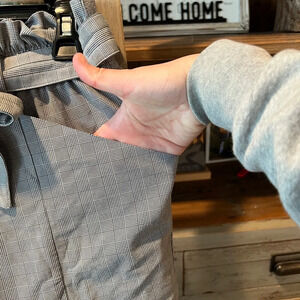 EUC Athleta women’s plaid Skyline pant I size 4. These pants are the perfect pant for travel or if you like lightweight clothes! Black and white plaid, deep front pockets, back button pocket, Paper bag waistband and tie belt! Some peels from wear as pictured, not visible when worn! Check photos for measurements in inches! A