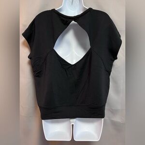 Athleta womens top black short sleeves cut out athleisure, athletic size XL