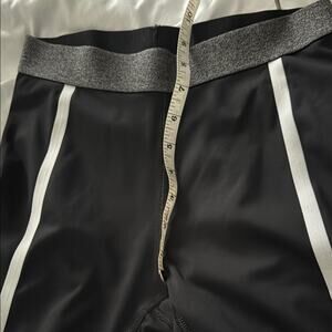 Stylish black leggings with white side stripes. Perfect for workouts or casual wear. Comfortable and stretchy material. in great used condition, no flaws or damage to note.