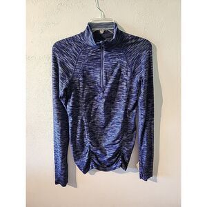 Athleta 3/4 Zip Long Sleeve Blue Purple Pink Fitted Stretch Top Small Thumb Hole