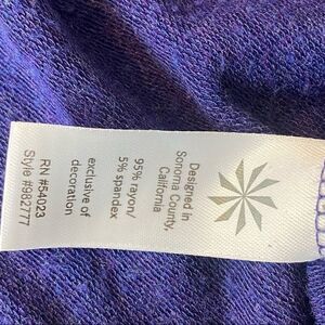 Good used condition. Has some wash wear but no holes, stains or snags! This shade of purple is so pretty! Perfect for lounging or you can throw on some dark jeans and boots too dress it up. A Very versatile piece.