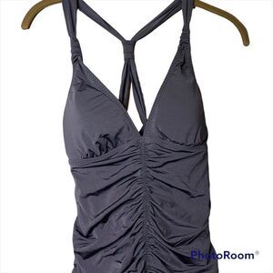 Athleta Aqualuxe Tankini Style #984289 Dusty Gray Size S Shell 74% Nylon/26% Spandex