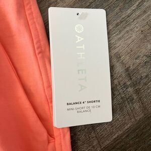 This listing is for a NWT's Athleta Balance 4" Shortie Mini Shorts in bright coral, in size 2X. Athleta Balance 4" Shortie, an athletic essential designed for ultimate comfort and performance. These vibrant coral shorts feature a relaxed fit and a soft, breathable fabric, perfect for a wide range of activities. Details include an elastic waistband with a drawstring for a customized fit, convenient side pockets for storing essentials, and a flattering 4-inch inseam. The design ensures a full range of motion while providing a stylish, sporty look. Ideal for yoga sessions, running errands, or casual outings, these shorts blend functionality with effortless style.