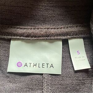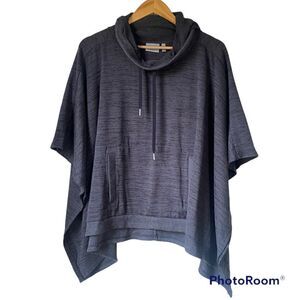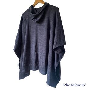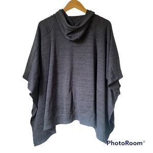 Athleta Blissful Hooded Poncho, with a beautiful waterfall / cascade cut. Pullover hooded sweater shirt with front pocket and adjustable hood / neckline. Great for yoga, the gym, or lounging around. Perfect layering piece.