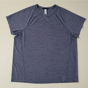 Navy heather tee by Athleta is just right for medium to high impact workouts at the gym, studio or outdoors. It's round neck gives you coverage while the relaxed cut gives room to move when working out and the seamless construction give maximum comfort and minimal chafing. Not just for workouts, this chic blue top is also perfect for commuting, work, and travel.