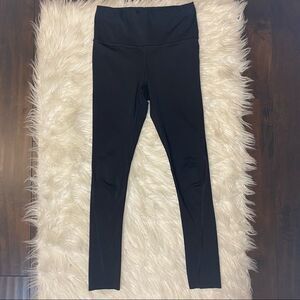 Perfect condition high rise black 7/8 leggings. Designed with a zippered back pocket, hidden interior pocket, raw hem, and drawstring to adjust the fit of the waist. Slippery spandex material so these puppies are gonna last forever and will not pill!