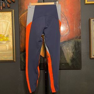 Athleta Crest High Rise Leggings Blue Red Grey Color Block Tights Full Length