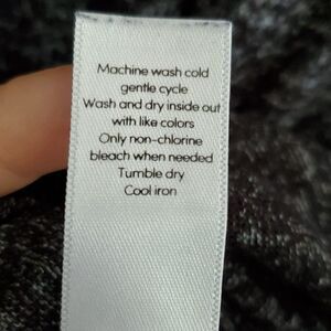 Scoop hem with thumb holes in sleeves. Heathered material. Size small