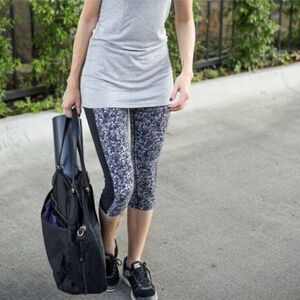 Athleta Ditsy Stripe Balance Capri Flint Gray M