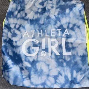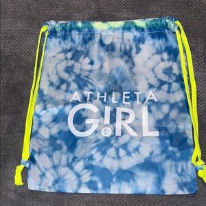 ๐๏ธ Athleta Girl Blue Tie-Dye Cinch Drawstring Backpack Neon Yellow Straps