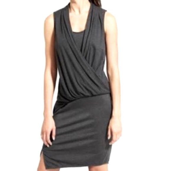 Athleta Gray Sleeveless Mini Dress XS V Neck Wrap Casual