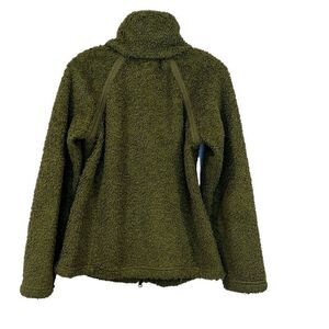 Made from polyester with a Sherpa feel. Full zip and front pockets. Measures armpit to armpit 18 inches, shoulder to hem 23 inches made in Canada.