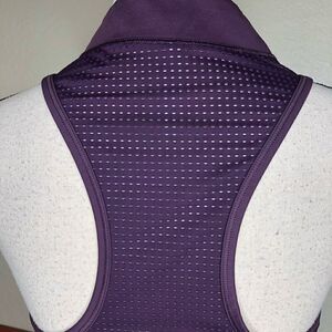 Wonderful athletic top perfect to get your sweat on. One cool detail about this top, is, there is a stretch cord on the sides that allows you to adjust the length of the top. In excellent condition.