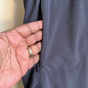 Smoked gray joggers with ruching on sides, zipped pockets, elastic waistband. EUC