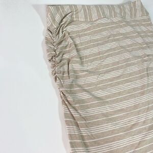 Athleta Maxi Skirt Women's Medium Serafina Beige White Striped Ruched Side Slit