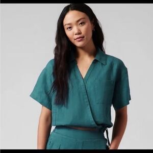 Top Athleta Borealis Green Linen tie top Medium Brand new without tags