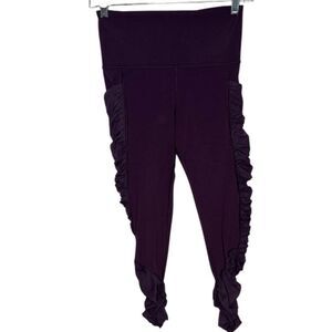 Athleta Mesh Up 7/8 Leggings In Spiced Cabernet. Size Small. Stash pockets on sides. High-Rise waistband. Chic leggings with side ruffles. Comfortable and stylish for any occasion.