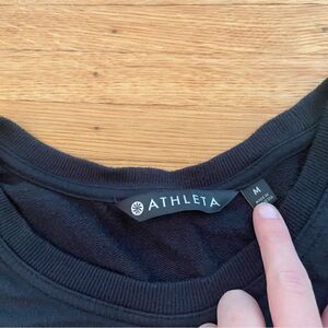 Athleta Nirvana Twist Front Sweatshirt in Black. Long sleeve tunic. Lightweight. 97% modal, 3% spandex. Armpit to armpit 19 1/2 inches. Length 28 1/2 inches. Some light pilling (not super noticeable). Size medium.