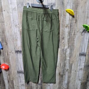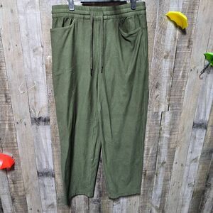 Details: high waisted, front and back pockets, stretchy adjustable waist, very comfortable, straight leg