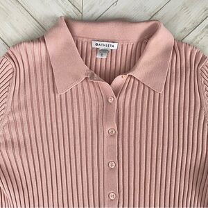 Athleta Pink Collar 1/4 Button Down Sweater size XL