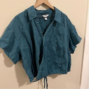 FAVE - Tie detail at the waist. Semi-fitted, skims easily over the body Crop length, sits above the natural waist Collared Body length in size medium - Regular - 22" Body length in size Plus/2X - Regular - 23.5".