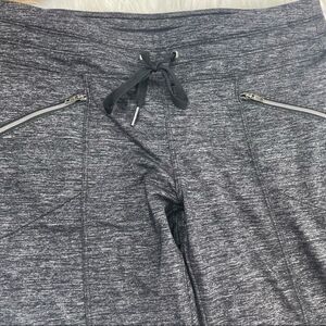 Athleta Quest Metro slouch jogger pants size small. The yoga-pant-comfy METRO style made to give your jeans a day off with handy pockets, sweet seam lines and super stretchy fabric that supports your love of adventure. Heathered Charcoal and Drawstring waist . Two front zip pockets and Two back pockets. Drawstring ankles. Supplex Nylon/Lycra Spandex /polyester blend material with stretch. PILAYO: Our exclusive, signature fabric that's our go-to for every workout . WICKING: Pulls sweat away from the body so it can evaporate faster. BREATHABLE: Sweat can travel through the fabric so it can evaporate on the surface. No holes or stains.