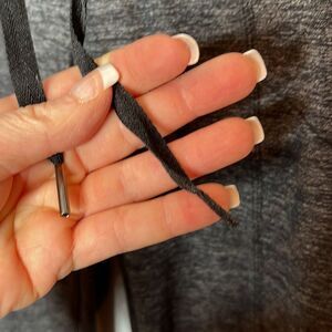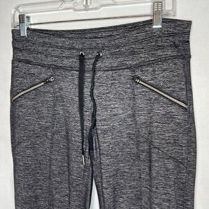 Athleta Quest Metro Slouch Jogger Pants. Size Small. Color: Heathered charcoal. Drawstring waist. Two front zippers. Two back pockets. Drawstring ankles. Material: spandex, nylon and polyester. One of the the drawstring metal piece is missing as shown in picture. Excellent condition.