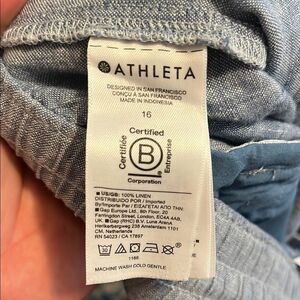 Athleta Retreat Linen Wide Leg Pants Blue Linen Elastic Waist Pockets Boho Coastal Minimalist.