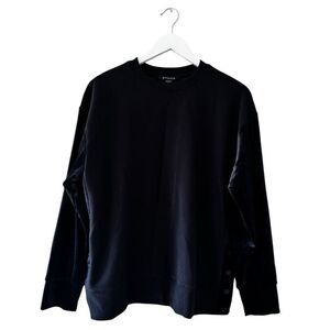 Athleta Retroplush Velvet Mixed Media Crewneck Oversized Sweatshirt, Long Sleeves Loungewear Soft Buttons Snap Black, Size M #2373