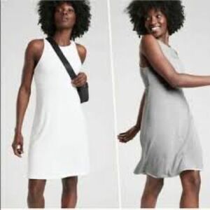 Athleta Reversible Santorini High Neck Dress, Bright White/ Grey Heather, Size XS NWT