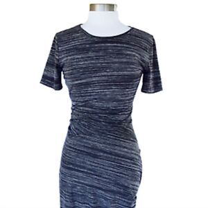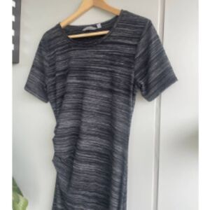 Excellent condition. Black grey and white space dyed stretchy figure flattering midi. You can adjust this dress to look the best on you.
