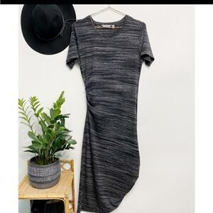 Athleta Ruched Midi Asymmetrical Space Dyed Dress