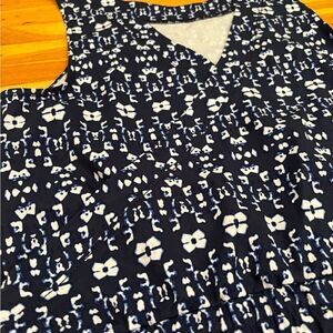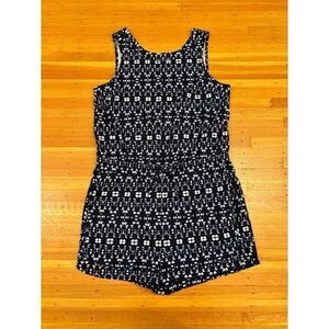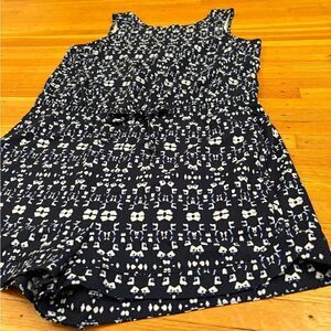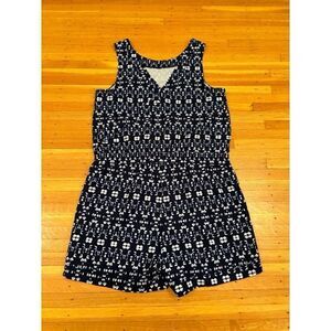Athleta Sakura Crossback Athletic Romper. Navy pattern. Cinched waist with adjustable tie. 2 pockets. 86% polyester, 14% spandex. Armpit to armpit 18 1/2 inches. Length 33 inches. Size medium. Excellent/like new condition.