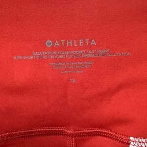 New without tags, Athleta Salutation Slash Pocket 16.5” Skort. Size 1X. The color is rust, or reddish-orange. Waist is 17” (unstretched) and total length is 19”.