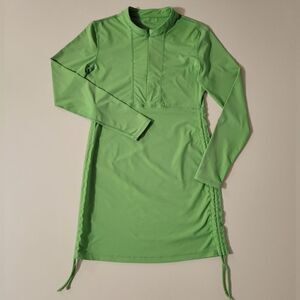 Athleta Shirrendipity Rashguard 1/2 Zip Ruched Green Swim Top