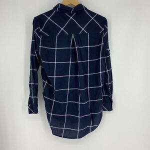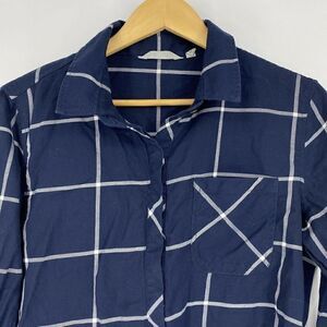 Navy Blue White Presidio Windowpane Plaid Popover Tunic Top