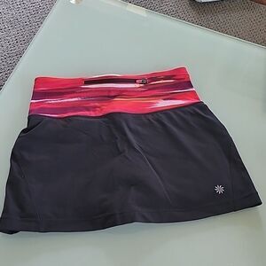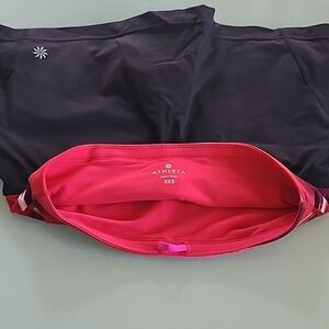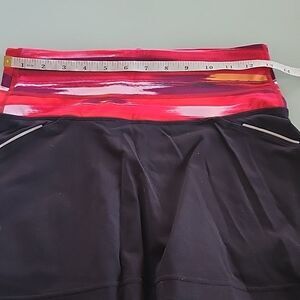 Zippered pocket in back, stay in place straps on shorts, cinch waist. B65.7221